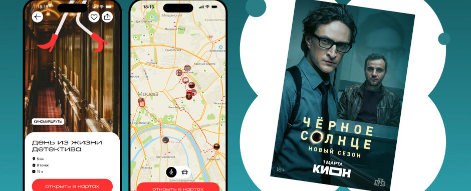 Коллаборация «КИОН» и «иду» расширяет вселенную «Черного солнца» за пределы экрана: зрители могут не только следить за развитием сюжета, но и буквально выйти в город — прожить собственный «детективный день», выбирая маршрут под настроение и интересы.